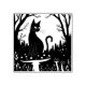 A Familiar Black Cat And Toadstools Halloween Illustration 3 is a witchy design for Halloween. A familiar black cat, wearing a collar necklace is sitting by toadstools in a woodland scene. Ideal for Halloween lovers or cat lovers. A fun design for boos and ghouls.