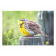 Ein flauschiger Western Meadowlark sitzt auf einem Posten im Keyhole Staat Park in Wyoming. Fotografie von Karla Chrast