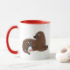 A mug with a cute illustration of a happy cheerful penguin sitting next to a friendly seal.
