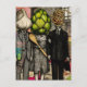 A garlic, an artichoke, and a spaghetti fork funny postkarte