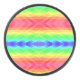 A hockey puck with a vibrant, symmetrical rainbow pattern on top, featuring a seamless mix of pastel colors. The setting is bright and colorful.