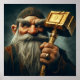 Abbildung eines Gnoms mit einem goldenen Hammer. Generiert von Dalle3.