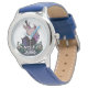 Kinderuhr aus Edelstahl mit blauem Lederarmband