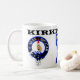 A Kirkpatrick mug featuring the Kirkpatrick badge in two different languages.