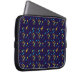 A laptop sleeve with a vibrant geometric pattern. It features colorful abstract shapes on a dark blue background, creating a dynamic and modern look.