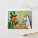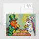 A leprechaun and a unicorn rabbit eating tacos postkarte