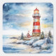 A Lighthouse in Winter Quadratischer Aufkleber