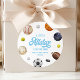 A Little Allstar Is On The Way! Sports Baby Shower Runder Aufkleber