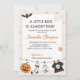 Charming Halloween-themed baby shower invite featuring ghost, pumpkin, and stars in soft orange, black, and cream. Perfect for gender-neutral spooky showers in fall 2025. Ideal for expectant parents who want a cute, seasonal design with a warm, playful vibe.