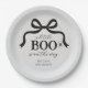 This design features Halloween baby shower theme "A Little Boo Is On The Way" with black bow and spooky spiders webs and spiders and flying bats to give it a cute but spooky Halloween vibe. Perfect for gender neutral baby shower in grey and black colors.