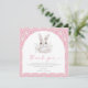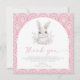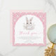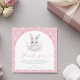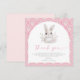 Express your gratitude with a touch of girly charm and whimsical sweetness. This beautiful thank you card features a charming illustration of a baby bunny nestled amongst delicate flowers, framed by a soft, arched design. The pink and cream tones lend a gentle, earthy feel, perfect for thanking guests who celebrated your "little bunny on the way."