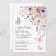 The design features a delicate arrangement of watercolor wildflowers and greenery, accented by pink and purple butterflies fluttering gracefully across the front. The color palette includes soft blush pinks, dusty rose, lilac, lavender, violet, and fresh greens, creating a dreamy and gentle aesthetic.