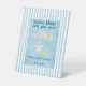 Bring a personal touch to your baby shower or special event with this customizable “A Little Goose Is On the Way” pedestal sign! Featuring a delicate watercolor illustration of a mama goose and baby under a charming umbrella, along with soft white and light blue stripes, this sign is as sweet as it is versatile.