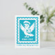 Our little postbird and mascot is featured on this teal postage stamp design with her name "Penny Post", wearing a postman's hat and holding a postcard with a heart. A little love, flying your way is written as a cute message at the bottom of the postcard! Great for kids - just adorable!