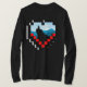 A minimalist illustration of a lone figure sitting on a mountain peak at sunrise, framed inside a pixelated heart, combining a love for nature