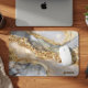 A luxurious gold and white marble background with metallic veins and soft flowing gradients. The elegant shimmer and fluid stone design make this texture stand out. You can personalize this mouse pad with your name.