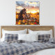 A pretty horse themed canvas art. A beautiful scene of a mama horse and her baby foal sitting on the Autumn leaves at dusk.