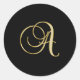 "A" Monogramm Initial in Gold auf schwarz. Runder Aufkleber