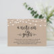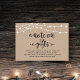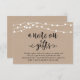 A note on gifts card. Modern rustic wedding, brown kraft, cottage string lights theme.