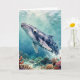 A oceanic themed birthday card with a nautical poem inside. The front has a beautiful illustration of an impasto style whale swimming deep in the sea by vibrant colorful coral.