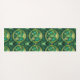 A pattern of intricate, green and gold circular yogamatte