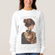 A patterned shirt of a woman wearing a tattoo-patterned shirt!