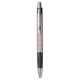 A pen with a colorful geometric pattern on the barrel, featuring black trim and a click mechanism. It has a modern, vibrant design on a white background.
