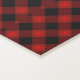 A product image shows two rectangular scarves, one vertical and one horizontal, with a black and red checkered pattern on a plain white background. The tone is simple and modern.
