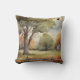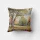 The throw pillow a a sweet restful scene on it with trees in bloom green grass and a small building. Just a sweet pillow for peaceful decor in the home.