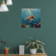 A Sea Turtle and Sun Rays in the Ocean Blue Poster
