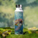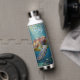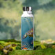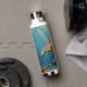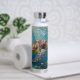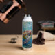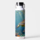 A sea turtle themed personalized water bottle with an illustration of a sea turtle under a calm teal sea swimming among the coral on the ocean floor with sun rays beaming down on him through the aqua water.