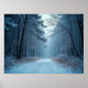 This breathtaking artwork captures the tranquil beauty of a winter wonderland. A pristine, snow-covered path winds gently through a dense forest, its towering trees adorned with a delicate dusting of frost. The soft, diffused light of dawn filters through the branches, creating a mystical atmosphere as a gentle mist hangs in the air. The muted tones of blue, white, and grey evoke a sense of peace and solitude, inviting the viewer to step into this serene landscape and experience the quiet magic of a snowy morning. This piece is perfect for those who appreciate nature's artistry, the stillness of winter, and the evocative power of a frosty forest scene.