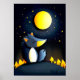 A serene wolf rests on a hill, surrounded by glowing yellow trees and a starry night sky with a full moon overhead. The scene evokes a sense of tranquility and wonder with its vibrant colors and whimsical design.