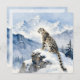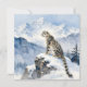 A blank notecard with an illustration of a majestic snow leopard perched on a craggy, snow-covered peak, gazing out at a vast, frozen mountain range.