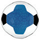 "A soccer ball design with black and white pentagons surrounding a central blue area featuring a dot pattern. Below, the flat pattern layout is shown."