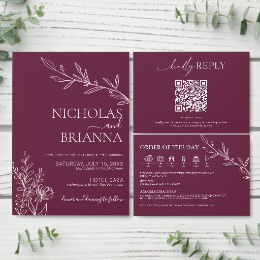Burgundy Minimalist WeddingDesignt von Franz Ellice