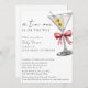 Eine Tini-Einladung mit QR-Code - eine einfache, minimalistische, wasserfarbene Babydusche für ein kleines Mädchen. Mit Skriptkalligraphie und schlankem Schriftart. Eine Aquarellbild eines schmutzigen Martini mit zwei Oliven und einem Coquette-rosa Bogen schmückt die obere rechte Ecke. Bearbeiten Sie diese Baby Dusche Einladung mit Ihren eigenen Veranstaltungsdetails. Machen Sie es Ihren Gästen leicht, auf Ihr Baby-Register zuzugreifen, indem Sie die URL Ihrer Babyregisterwebsite zur QR-Code-Vorlage auf der Rückseite der Einladung hinzufügen. Alle Texte können bearbeitet werden. Auch als sofortiger digitaler Download verfügbar, eine Öko-freundliche Art, Einladungen per Text, E-Mail oder Social Media zu senden.