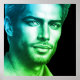 A young man, in green and blue, on a poster for your bedroom, living room or office walls.