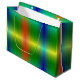 A vibrant gift bag featuring a glossy, rainbow große geschenktüte