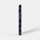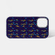 "A vibrant iPhone case with a dark blue background, featuring a pattern of colorful, diagonal lightning bolts in yellow, blue, and orange. The image shows both the back and side views, emphasizing the sleek design and lively pattern."