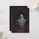 The overall color palette is dark and moody, dominated by blacks, reds, and whites. The illustration employs a detailed, semi-realistic style with a focus on texture and depth, creating a haunting and immersive scene. The ghost's lantern is the only bright source of light, highlighting the eerie, mystical environment.