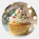 A cute Christmas sticker with a vanilla cupcake in a gold liner, vanilla frosting and sprinkles with red and green sprinkles. Seal your cards, gift bags or stick on a plate of homemade cupcakes!