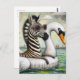 Ein zebrareicher Urlaub in einem niedlichen schwimmenden Schwan, während er auf einem Fluss schüttelt eine gemischte Medienkollektion generiert