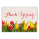 Personalisieren Sie den Text auf beiden Seiten dieser schönen "Aaah, Spring"-Karte mit schönen gemalten bunten Tulpen in einer Zeile auf einem Kopfsteinhintergrund.