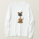 Brauner und weiß und schwarzer sitzender Welpen-Hundeshirt- oder -sweatshirtentwurf des entzückenden Cartoon. Niedlich und Spaß und voll von der Persönlichkeit. Kann kundenspezifischen Text bei der Einrichtung auch addieren.