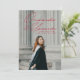 Moderne Abschluss-Ankündigung mit dem vertikalen Foto des Absolventen mit "Auf und Ab" in einer roten, handgeschriebenen Schrift. Personalisieren Sie die Front der Ankündigung des Foto Abschluss durch Hinzufügen des Graduiertennamens, Schule und Abschluss Jahr. Die Ankündigung kehrt zurück, um ein zusätzliches Foto mit den künftigen Plänen des Absolventen, Party-Details, etc. gezeigt unten.