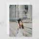 Moderne Abschluss-Ankündigung mit dem vertikalen Foto des Absolventen mit "Auf und Ab" in einer weißen, handgeschriebenen Schrift. Personalisieren Sie die Front der Ankündigung des Foto Abschluss durch Hinzufügen des Graduiertennamens, Schule und Abschluss Jahr. Die Ankündigung kehrt zurück, um ein zusätzliches Foto mit den künftigen Plänen des Absolventen, Party-Details, etc. gezeigt unten.