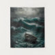 Abandoned Boat in Stormy Watters Ocean Art Wandteppich