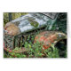 Ein alter rostiger, verlassener Vintager LKW, der mit Unkraut überwuchert wurde.