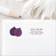 Ein Rücksendeaufkleber mit Illustrationen und Kontaktinformationen in lila Farben für Familie, Bauer, Kleinunternehmen, Obstliebhaber, etc.